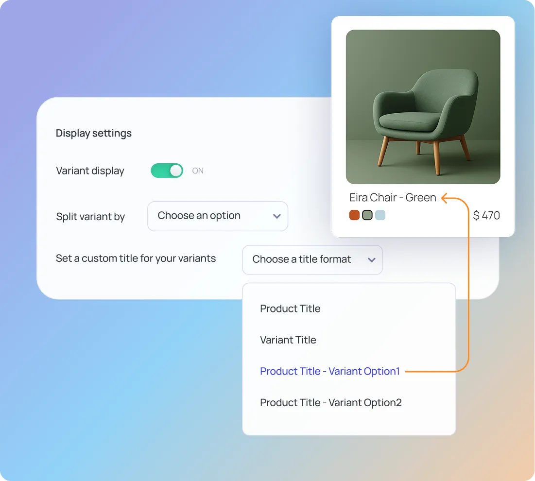 Control how variant names appear (e.g. “T-shirt – Blue”) while maintaining your parent product structure.