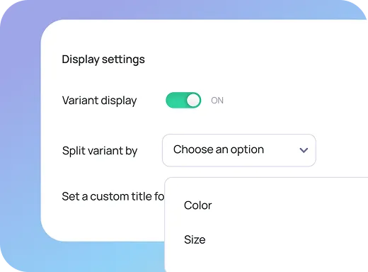 Choose how you want to split your variants — by color, size, material, or any option that fits your catalog.