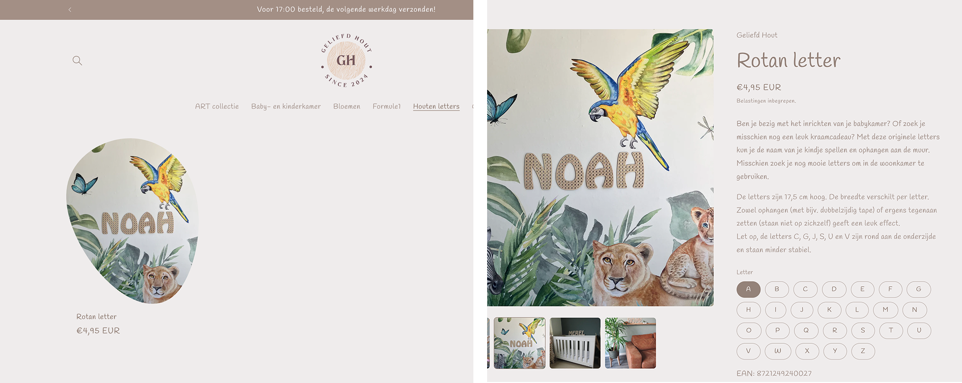 In this guide, I'll show you exactly how to enhance your online store's shopping experience with no coding — using a real example from one of our users: Geliefd Hout, a Dutch brand selling wall decorations.